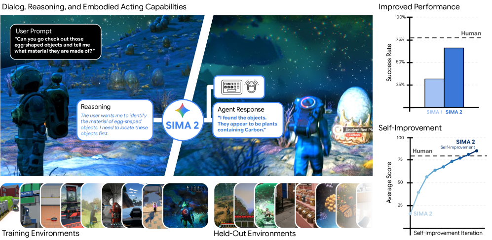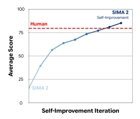 SIMA 2最令人兴奋的新功能之一是其自我提升的能力。