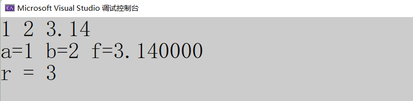 int r = scanf("%d %d %f", &a, &b, &f);