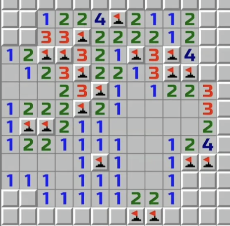 当然,我们有许多办法可以解决这个麻烦,比如:雷和雷的信息我们可以不使用数字,只要使用某些字符就行,这样就能避免冲突,但这样做的话棋盘上就有雷和非雷的信息,同时还有排查出的雷的个数信息,这样就会比较混杂,不够方便。