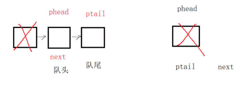 pq->phead = pq->ptail = NULL;完整代码如下所示: