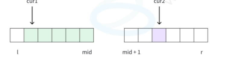 int i = L, j = mid + 1; // 双指针:i指向左半部分,j指向右半部分