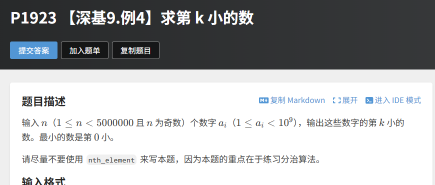 题目链接如下:https://www.luogu.com.cn/problem/P1923