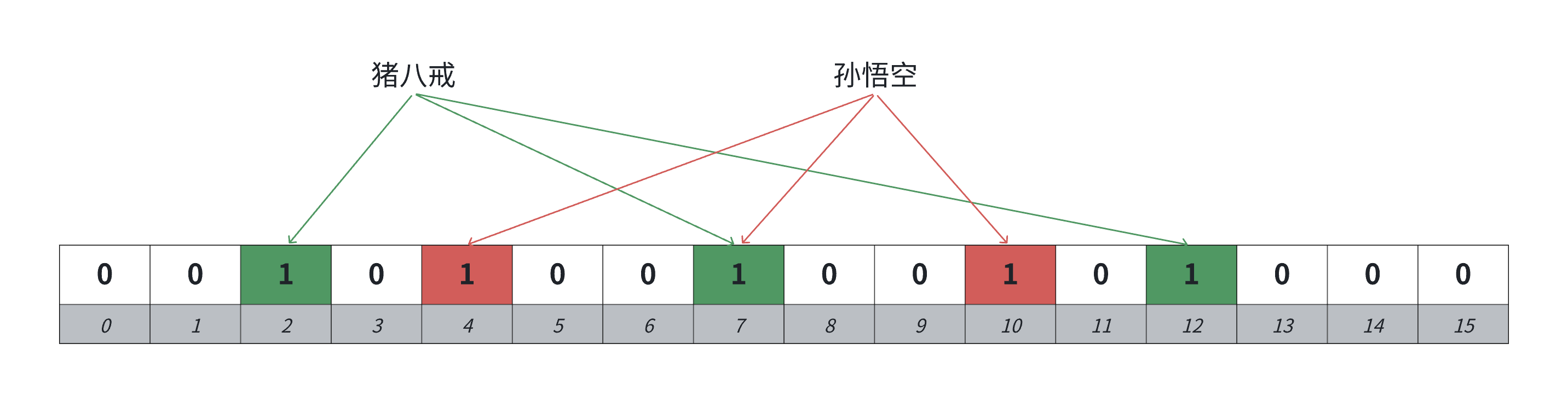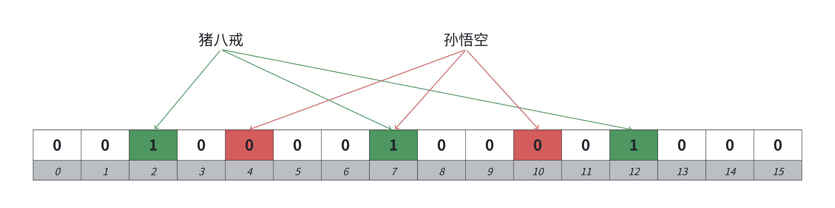 既然 “存整数本身” 内存不够,那我们换个思路:判断一个数 “在或不在”,本质是两种状态,刚好可以用1 个二进制比特位表示(1 = 存在,0 = 不存在)。这种用比特位映射数据状态的结构,就是位图(Bitset)。