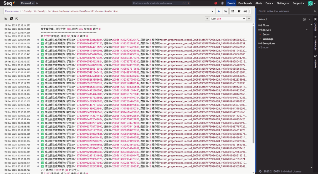 ⚠️ 距离考试开始时间不足 5 分钟,停止预生成。已处理: 800/1000,剩余: 200 名学生未处理NotStarted 状态的记录-- 默认查询(排除预生成记录)