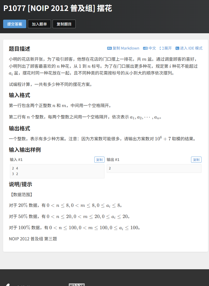 题目链接:https://www.luogu.com.cn/problem/P1077