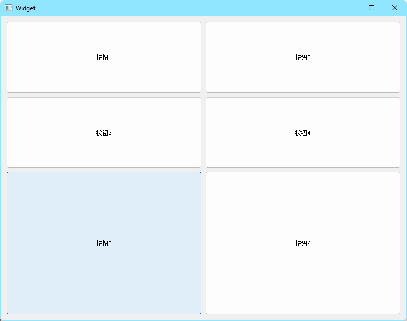 QSizePolicy::Fixed:固定大小,不拉伸;QSizePolicy::Expanding:拉伸填充多余空间;QSizePolicy::Minimum:最小尺寸,不拉伸;QSizePolicy::Maximum:最大尺寸,不拉伸。#include "widget.h"