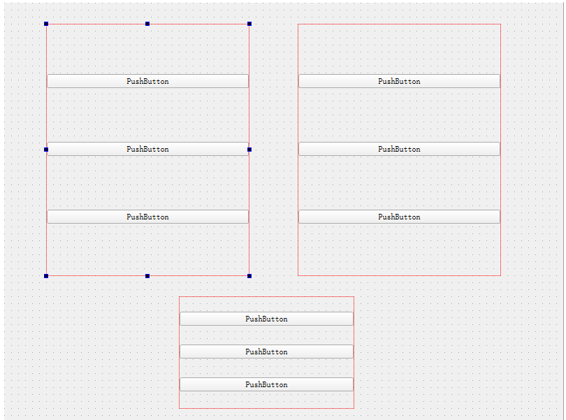 通过在界面中添加多个VBoxLayout控件,实现分组控制控件缩放。示例: