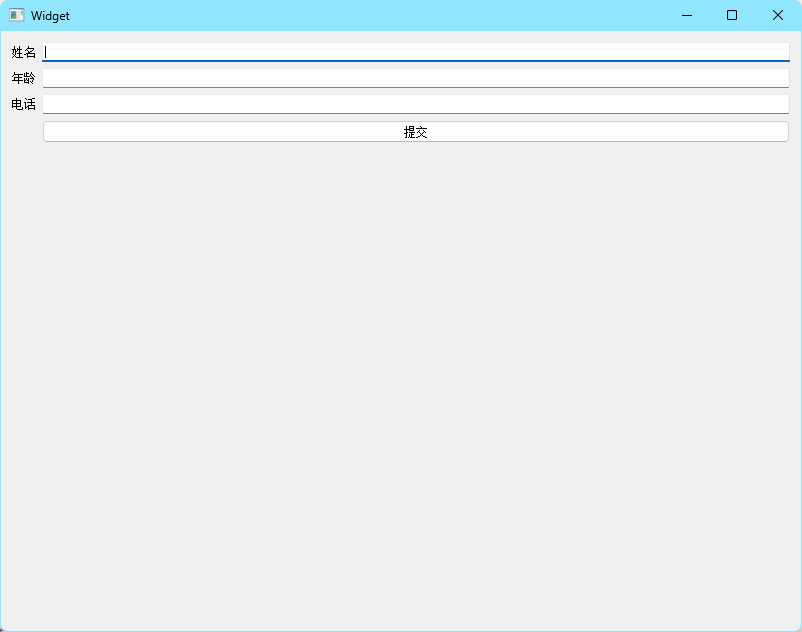 运行效果:2 行 2 列的表单布局,标签列宽度固定,输入框列随窗口缩放拉伸,水平和垂直间距分开设置。