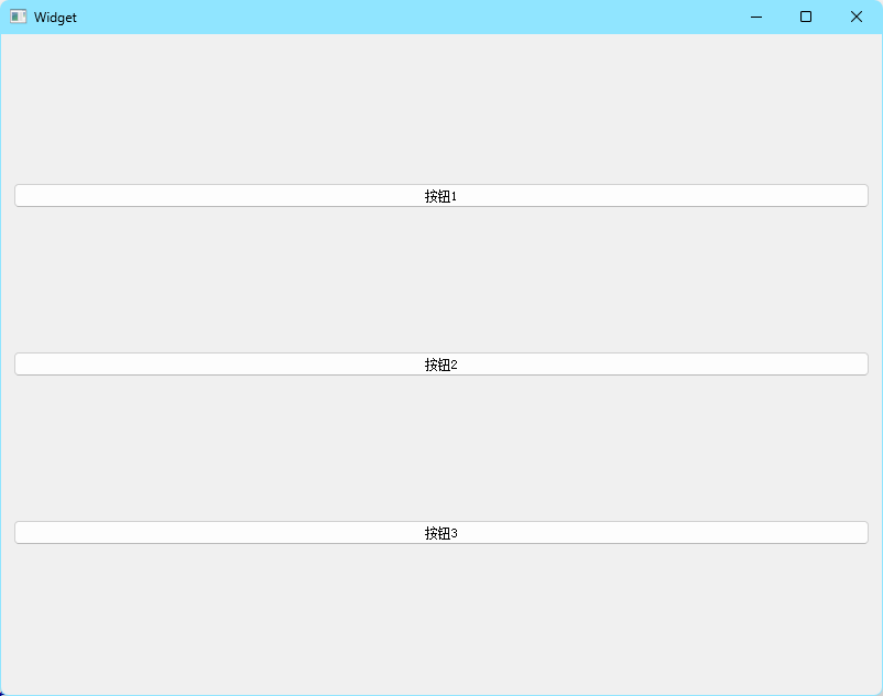 运行效果:三个按钮垂直排列,窗口缩放时按钮宽度自适应。