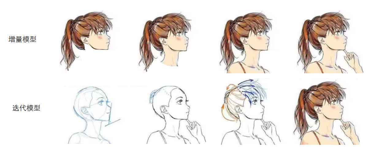 迭代模型的核心是 “按版本反复优化”—— 先开发一个 “全功能但粗糙” 的版本(迭代 1),然后根据反馈不断细化、优化(迭代 2、迭代 3),就像画人物画:先画整体轮廓(粗糙但有所有部分),再勾勒雏形,最后细化五官、着色,每一步都能得到一个 “全面但不精细” 的作品。