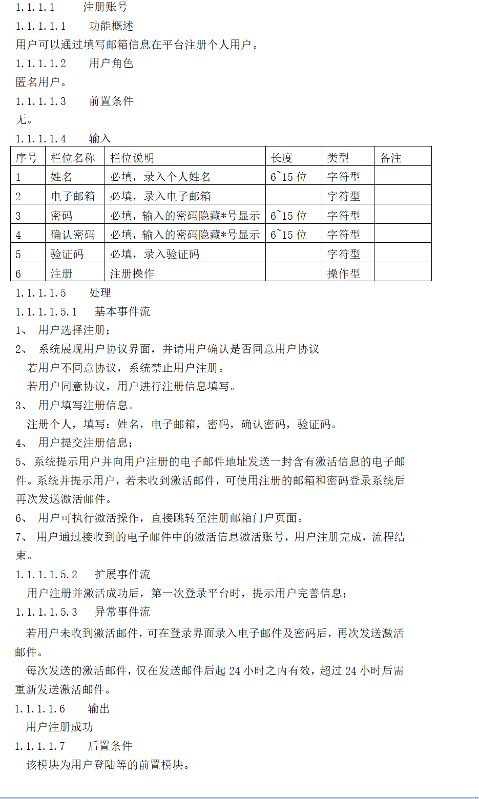 这些流程描述,就是测试的 “路线图”—— 测试人员需要沿着每一条流程,设计对应的测试用例,确保所有场景都被覆盖。比如异常事件流里的 “激活邮件 24 小时有效”,测试时就要验证 “23 小时内激活(通过)”“25 小时后激活(失败)”“25 小时后重新发送邮件再激活(通过)” 等场景。