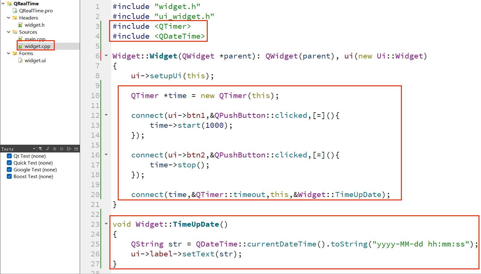 结合QTimer和QDateTime,可实现 “实时显示系统日期时间” 的功能,步骤如下:
