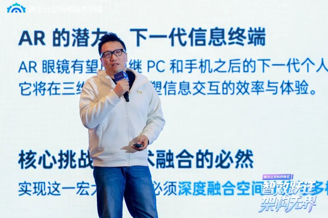 腾讯云副总裁、腾讯云架构师技术同盟品牌发展主席 徐勇州发表致辞。他表示:我们正见证一场贯穿算力、模型到应用范式的全方位技术较量。面对如此深层的范式迁移,架构师群体站在了能力重塑的十字路口。他抛出了三个核心挑战,直指每位技术人的内心: