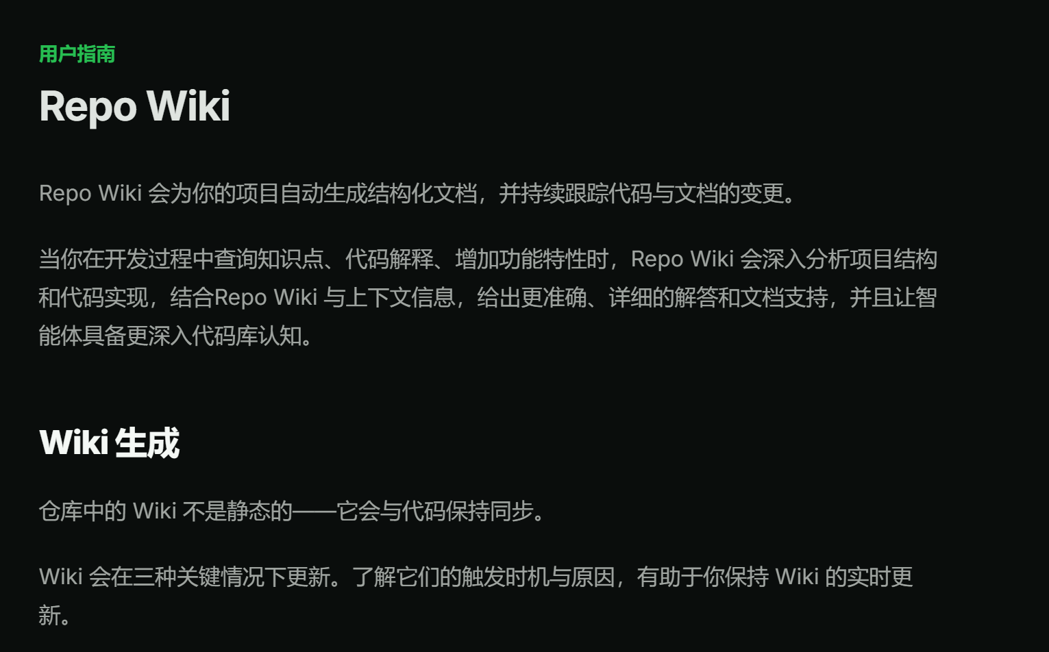团队协作套件 | Repo Wiki 共享、规则同步、权限管理 | 团队开发、知识沉淀 |