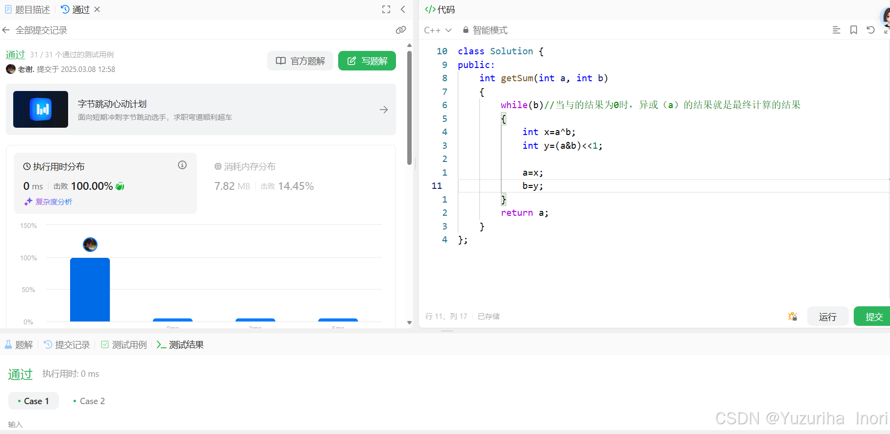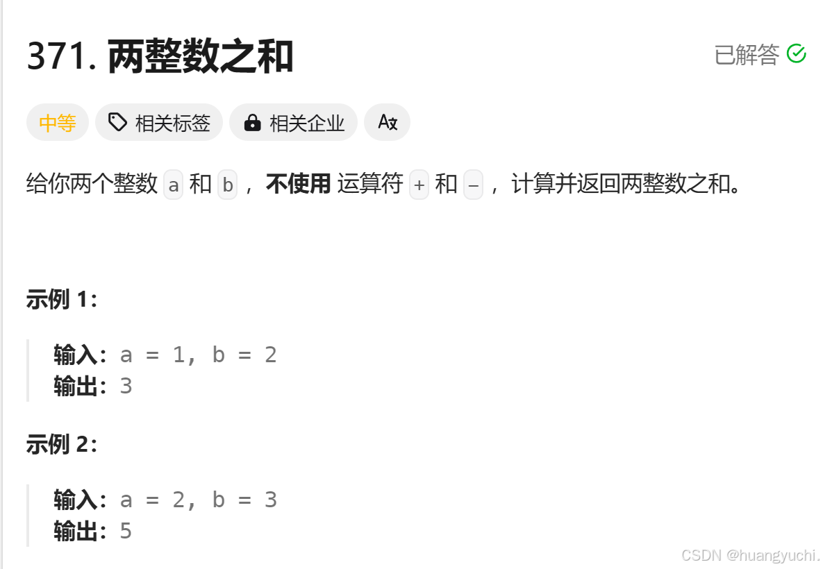 题目链接:371. 两整数之和 - 力扣(LeetCode)