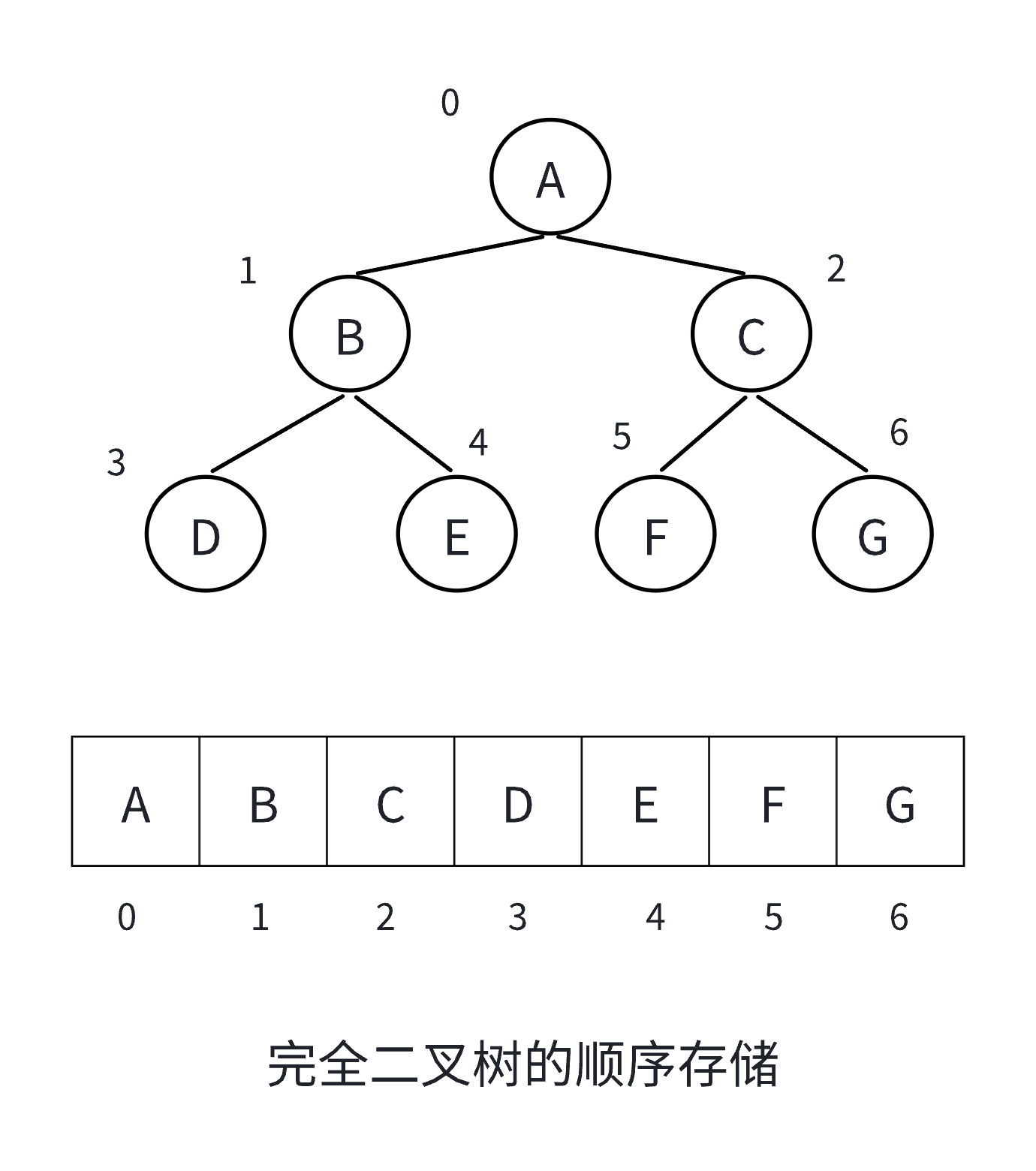 顺序结构存储就是使用数组来存储,一般使用数组只适合表示完全二叉树,因为不是完全二叉树会有空间的浪费,完全二叉树更适合使用顺序结构存储。