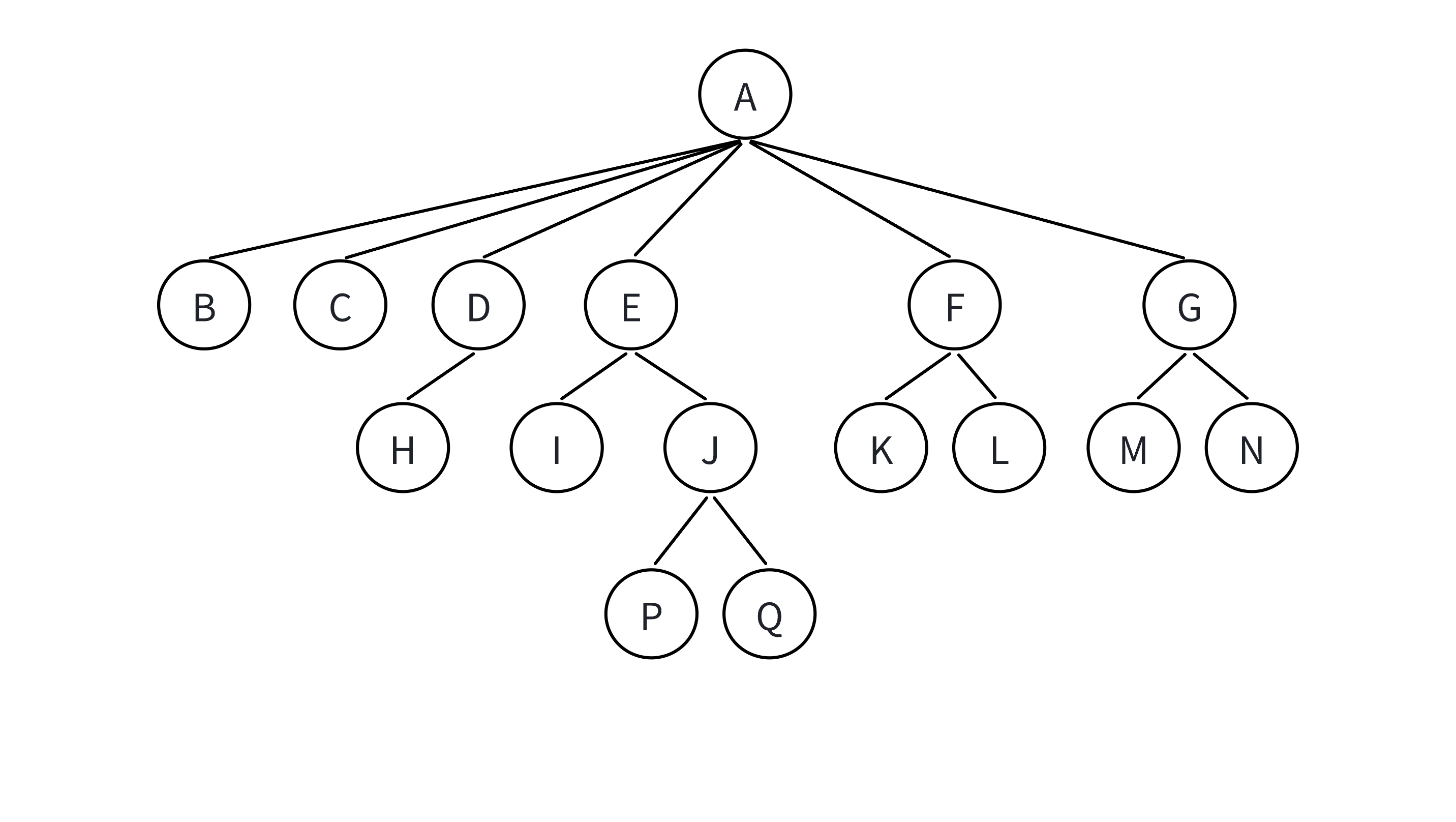 父结点/双亲结点:若一个结点含有子结点,则这个结点称为其子结点的父结点;如上图:A是B的父结点 子结点/孩子结点:一个结点含有的子树的根结点称为该结点的子结点;如上图:B是A的孩子结点 结点的度:一个结点有几个孩子,他的度就是多少;比如A的度为6,F的度为2,K的度为0 树的度:一棵树中,最大的结点的度称为树的度;如上图:树的度为6 叶子结点/终端结点:度为0的结点称为叶结点;如上图:B、C、H、I...等结点为叶结点 分支结点/非终端结点:度不为0的结点;如上图:D、E、F、G...等结点为分支结点 兄弟结点:具有相同父结点的结点互称为兄弟结点(亲兄弟);如上图:B、C 是兄弟结点 结点的层次:从根开始定义起,根为第1层,根的子结点为第2层,以此类推; 树的高度或深度:树中结点的最大层次;如上图:树的高度为4 结点的祖先:从根到该结点所经分支上的所有结点;如上图:A是所有结点的祖先 路径:一条从树中任意节点出发,沿父节点-子节点连接,达到任意节点的序列;比如A到Q的路径为:A-E-J-Q;H到Q的路径H-D-A-E-J-Q 子孙:以某结点为根的子树中任一结点都称为该结点的子孙。如上图:所有结点都是A的子孙 森林:由m(m>0)棵互不相交的树的集合称为森林;