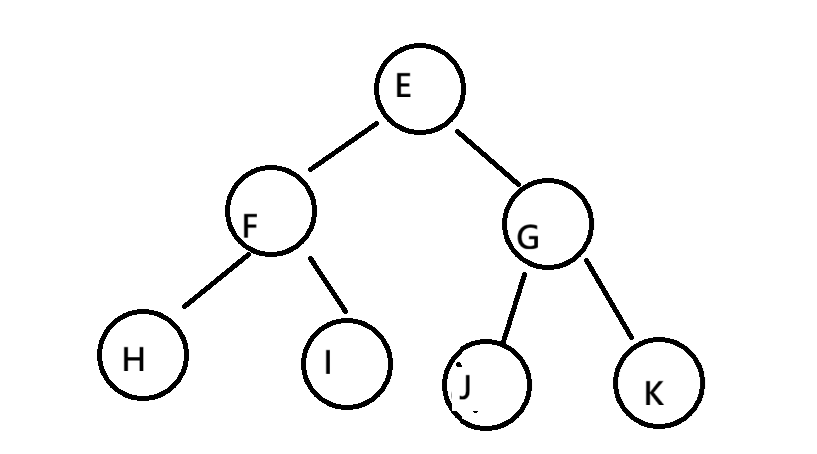 解析: 根据三种遍历规则我们知道先序遍历就是先根遍历,我们先打印的就是根,所以这题求根结点就是先序遍历的第一个字母:E,我们根据先序遍历和中序遍历尝试给出这题的二叉树的图解: