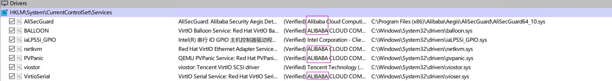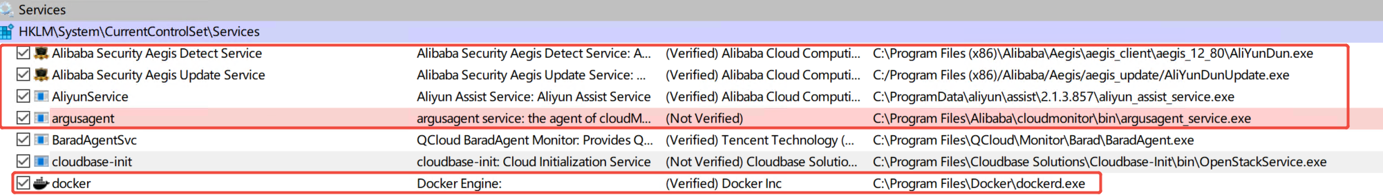 1、多了一些windows docker服务和阿里相关的服务和驱动,如下: