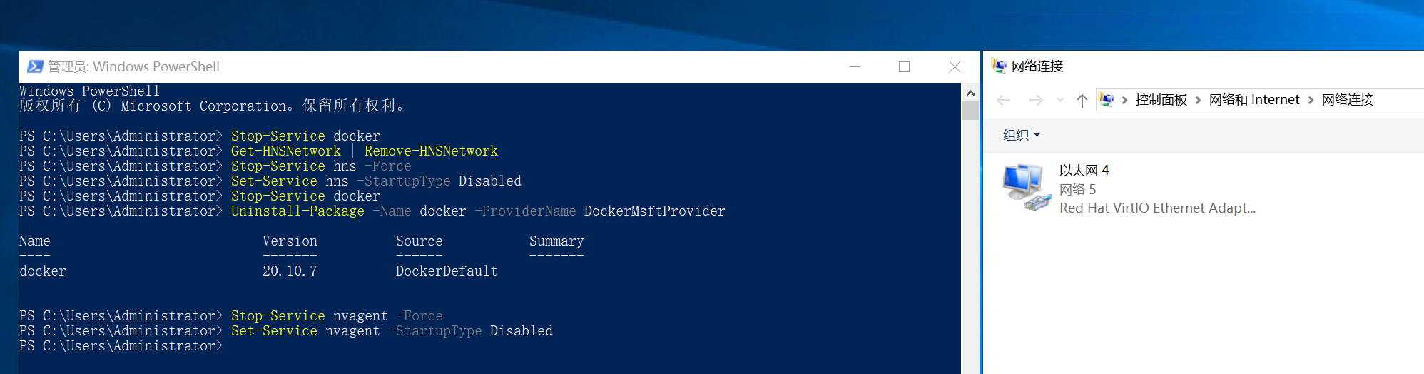 4、windows docker要卸载的话,管理员身份执行这4句powershell