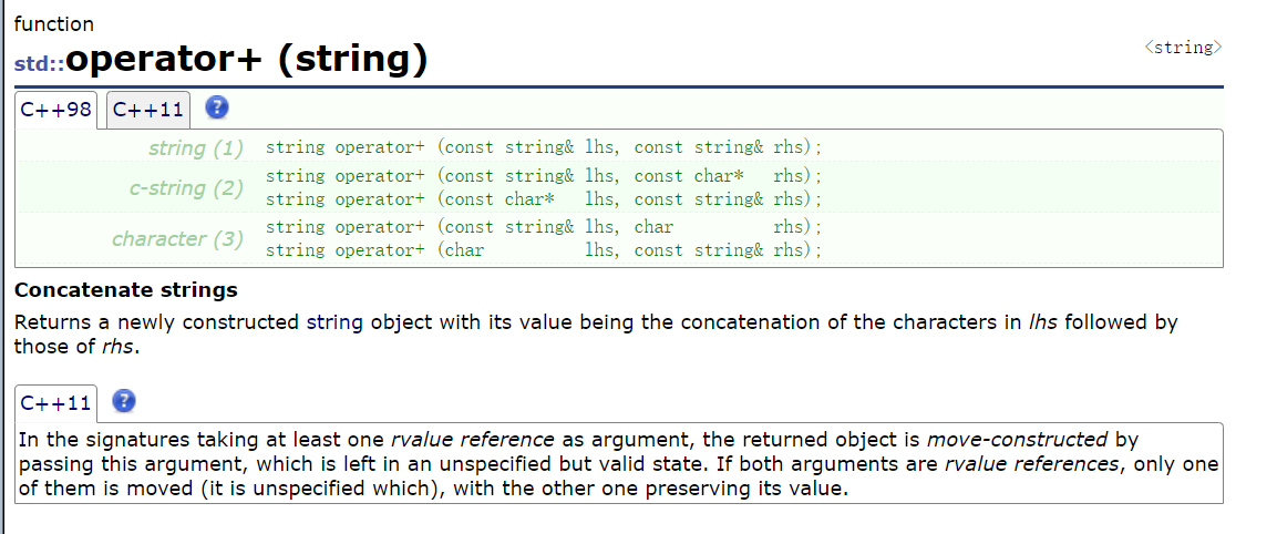 这里的+并没有被重载成成员函数而是被重载成了非成员函数,他也不属于这个板块里,但是都说了+=不去为大家讲解+感觉会怪怪的,所以下面为大家简单讲解一下string中的operator+