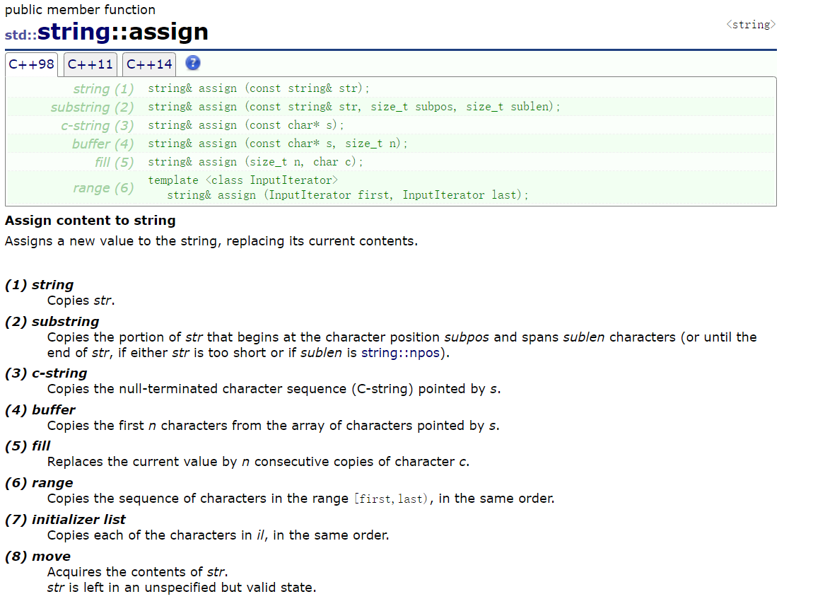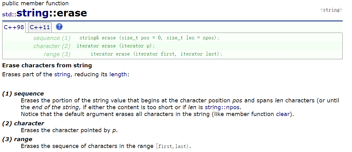 有部分前面的博客说过,下面挑部分讲解,大家要想详细了解,请浏览:https://legacy.cplusplus.com/reference/string/string/