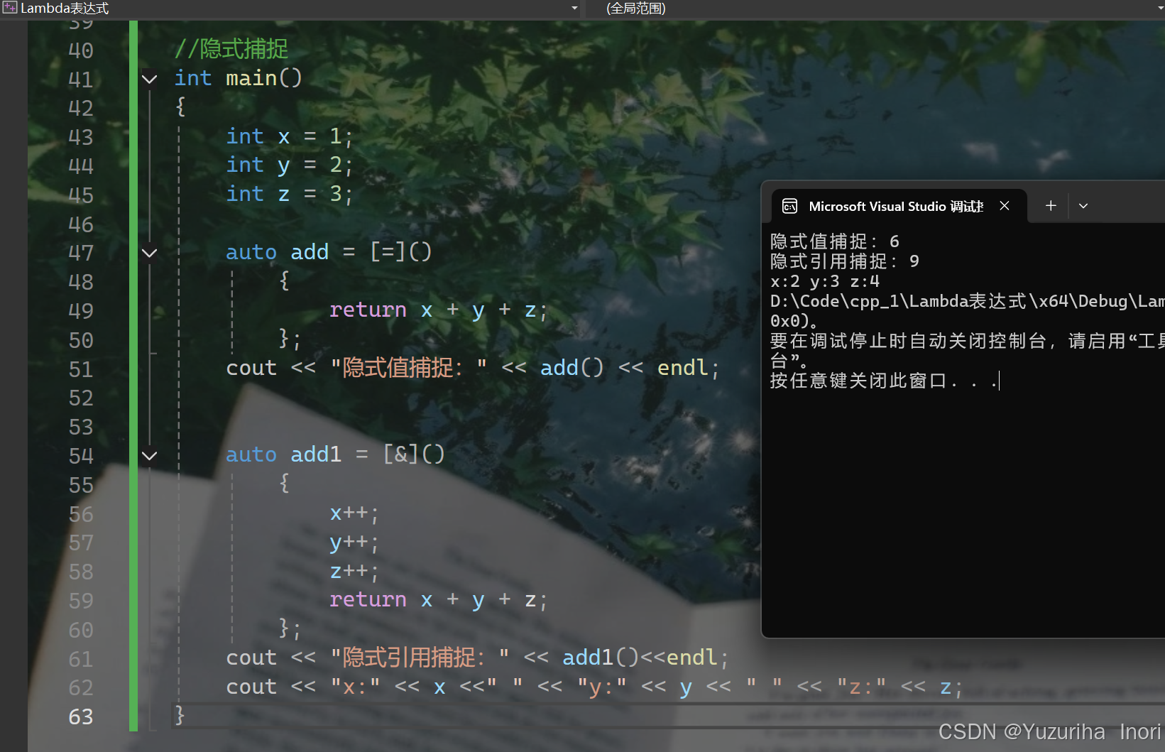 cout << "隐式值捕捉:" << add() << endl;