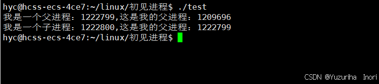 printf("我是一个父进程:%d,这是我的父进程:%d\n",getpid(),getppid());