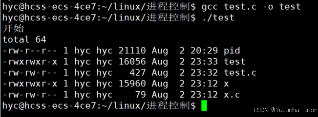 我们可以看到执行就第一个printf打印出了结果,第二行就执行就程序替换,将原来的程序替换为了ls指令。