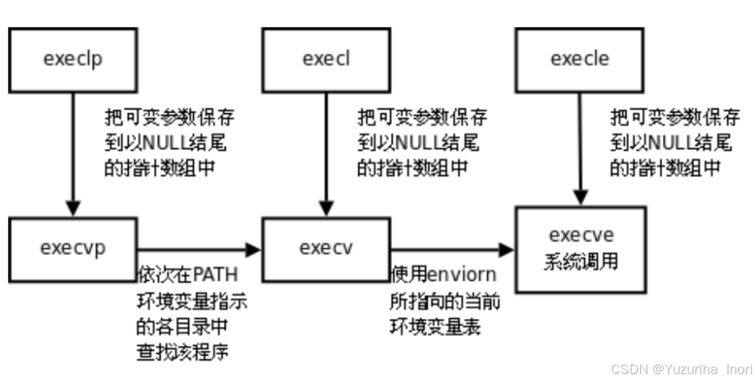 同上值得一提的是execve的系统调用,而其他函数都是C语言提供的