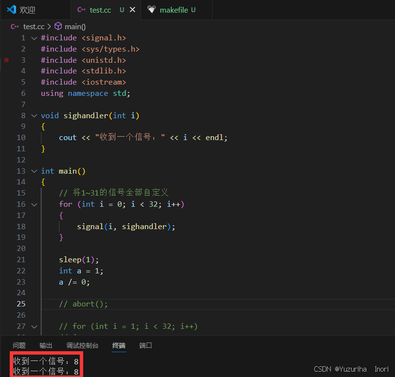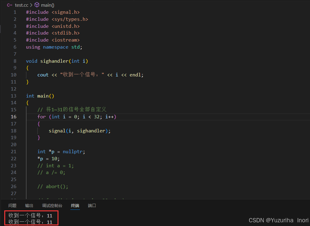显然,进程并没有执行for循环!这说明:即使自定义了处理函数,abort 最终仍会强制终止进程!