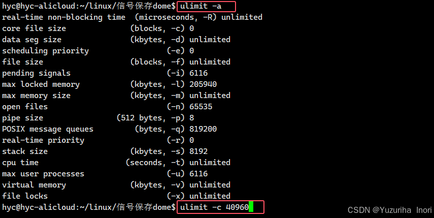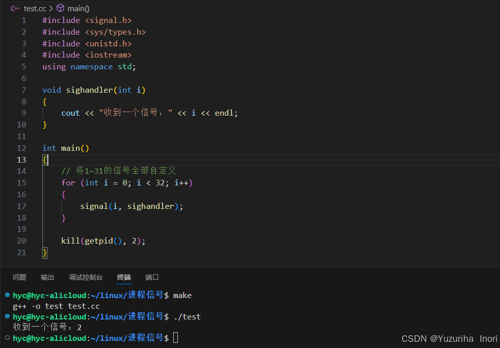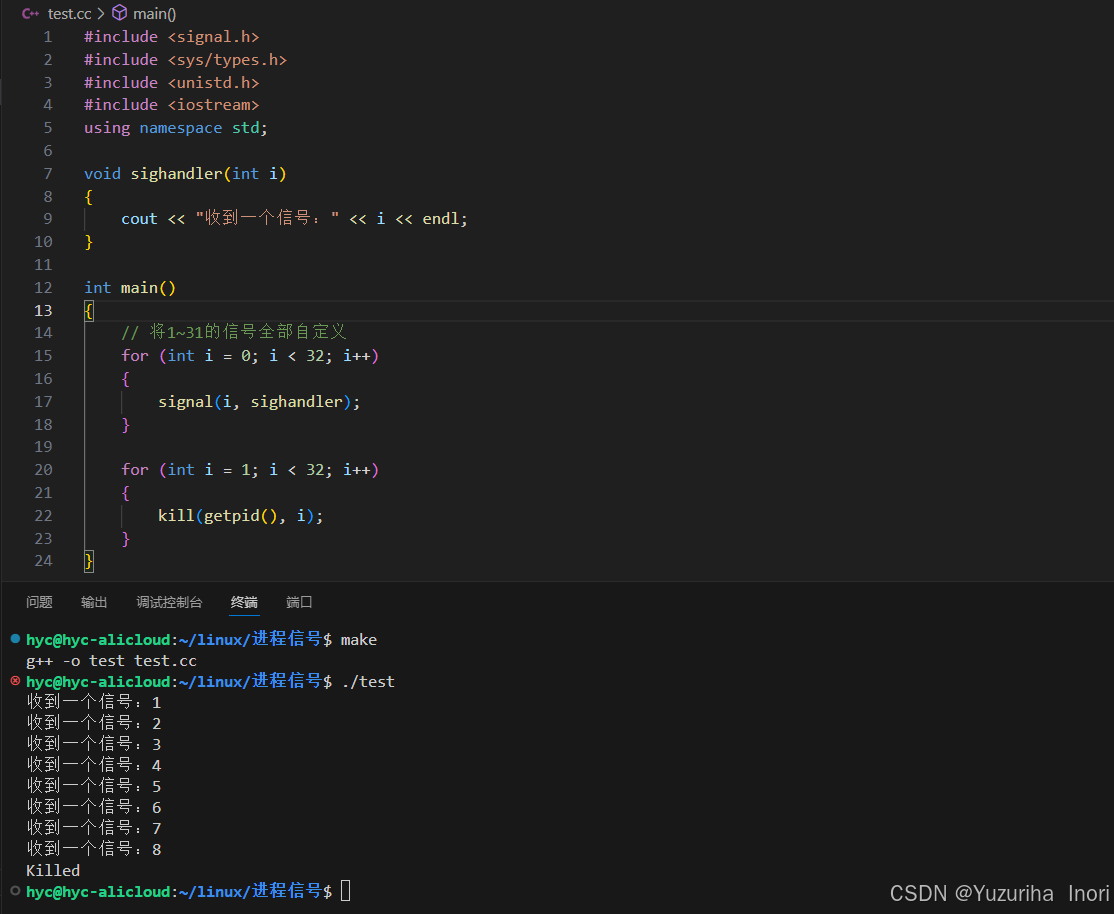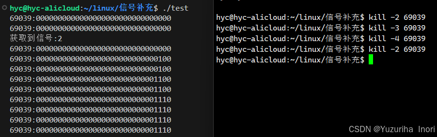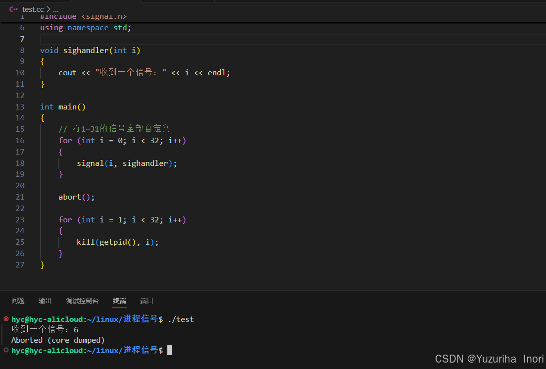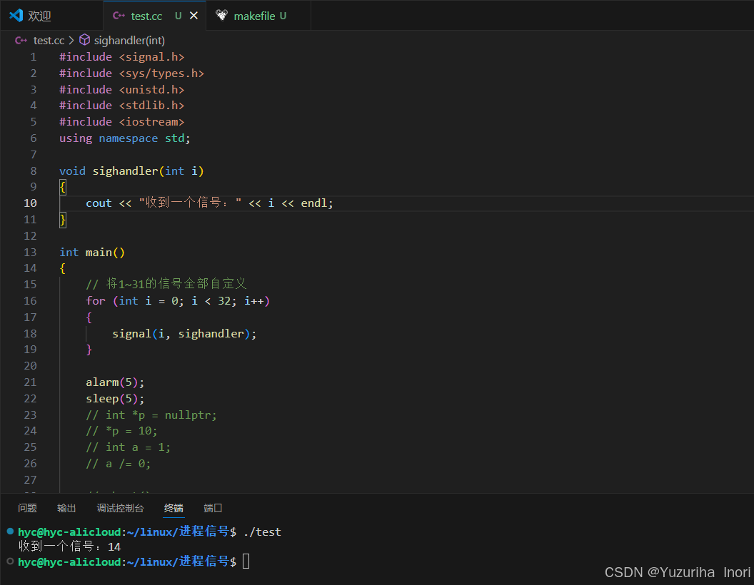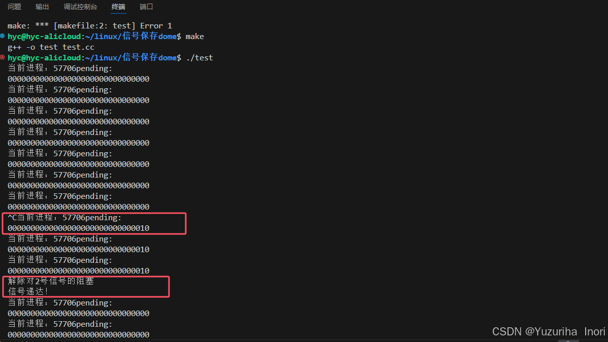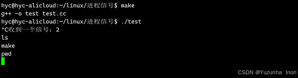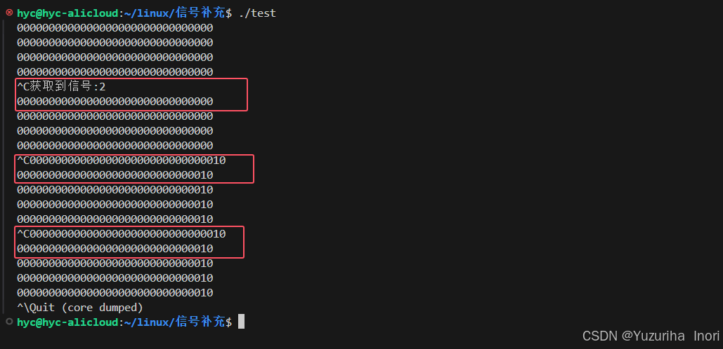 }hyc@hyc-alicloud:~/linux/进程信号$ ./test