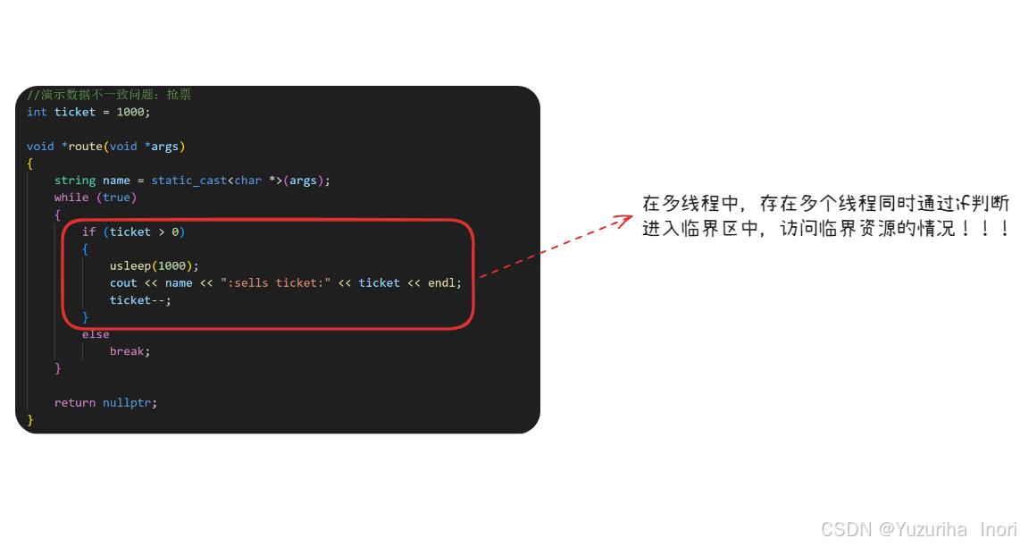 在多线程中,存在多个线程同时通过if判断,进入临界区中,访问临界资源的情况!