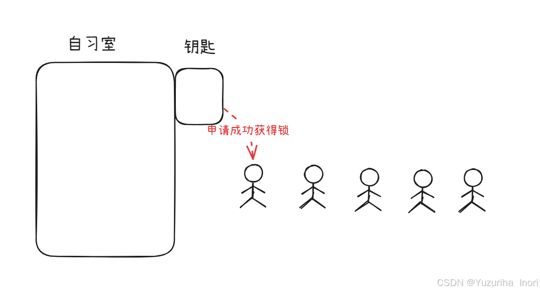 形象理解: 现在有一个自习室,只能容纳一个人进入其中。 大家都来争抢锁,只有获得锁的人才能够进入自习室!在你获得锁的期间,没有任何人没有进入自习室,必须等待你归还钥匙,解锁后。再次获得锁的人才能够进入自习室。 在你获得锁的期间,即使你出去上厕所或者吃饭,只要你没有归还锁,这个自习室依然是只有你可以进入的。