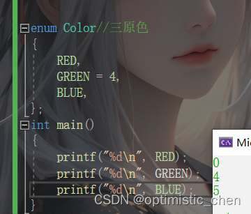 enum Color clr = GREEN; //使⽤枚举常量给枚举变量赋值本次博客到此结束 祝开心每一天~~~ 最后觉得博客有帮助,可以点点关注,支持一下,期待下次博客~~~