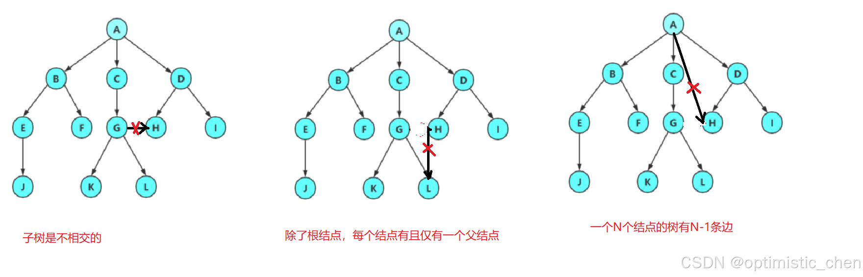 注意:树形结构中,子树之间不能有交集,否则就不是树形结构