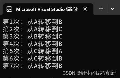 printf("第%d次:从%c转移到%c\n",i,sou,tar);