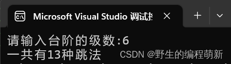 printf("一共有%d种跳法", Fn(n));