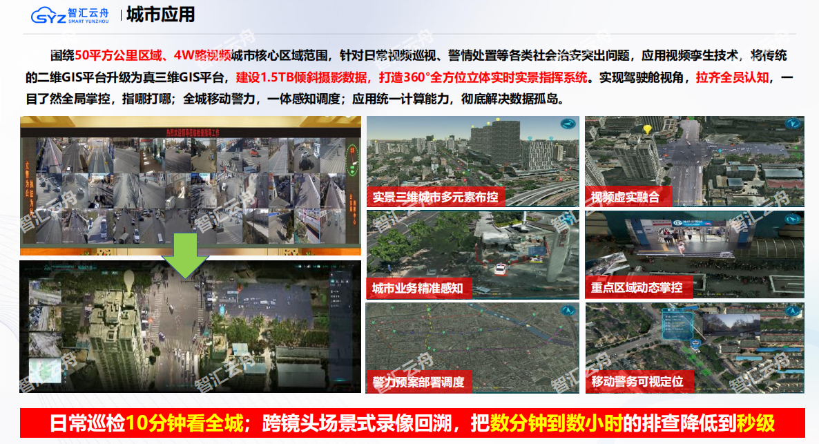 如果说空间智能是政务数字化的“眼睛”,那么视频孪生则是连接物理世界与数字世界的“桥梁”。这一技术通过融合实时视频流、三维建模和物联网数据,在数字空间中构建出物理实体的动态镜像。在这方面,智汇云舟依托其自主研发的“视频孪生专属引擎”,打造了“实时实景数字孪生”能力,为政务数字化提供了强有力的技术支撑。