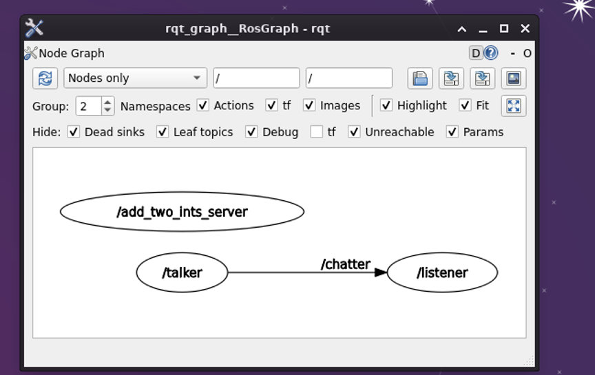 min: 0.999s max: 1.000s std dev: 0.00029s window: 13rqt_graph:清晰展示节点拓扑,系统架构一目了然。