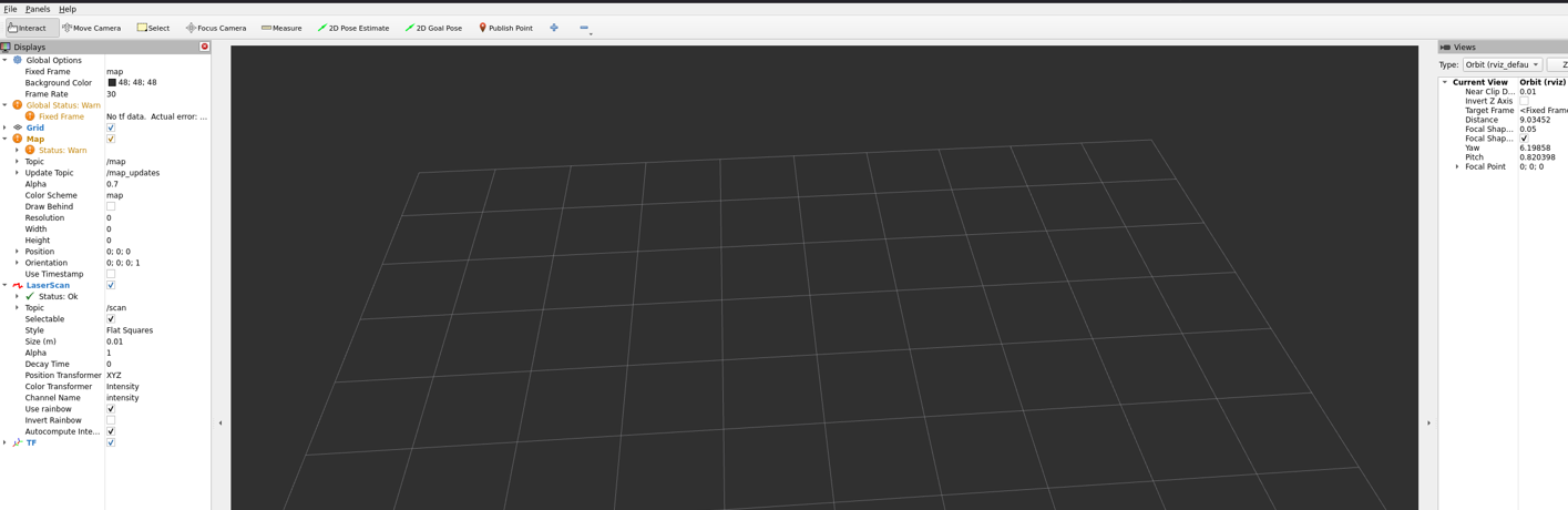 成功启动RVIZ2,界面加载完整,支持3D可视化交互。