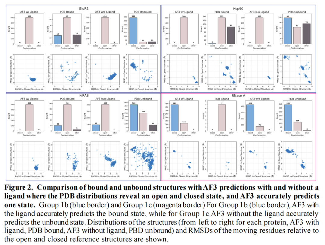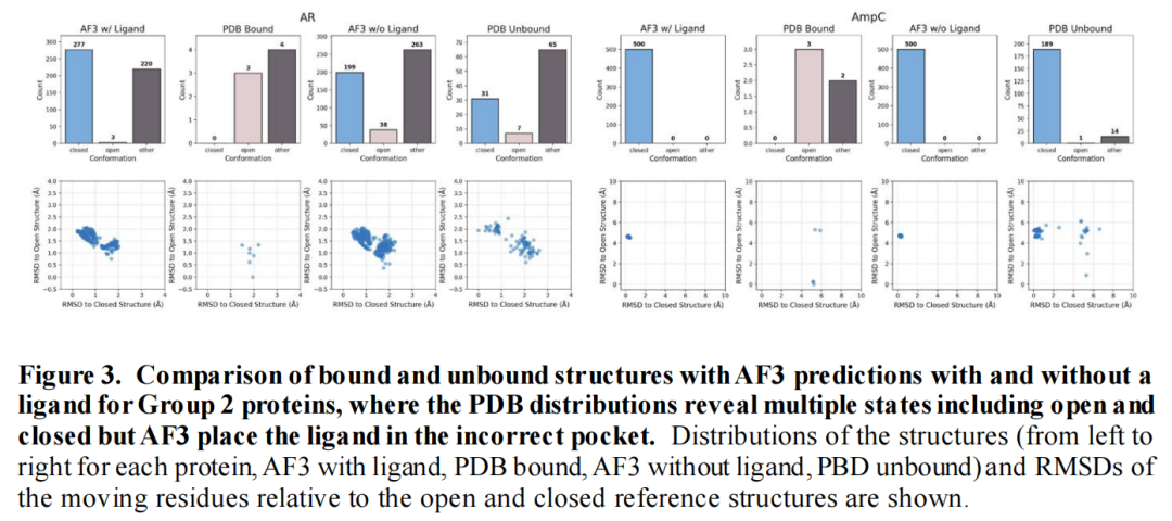AlphaFold2的主要局限在于对PDB中优势构象的“记忆偏差”,导致难以预测小众构象(如隐蔽位点开放构象)。而本研究表明,AF3的记忆偏差降低