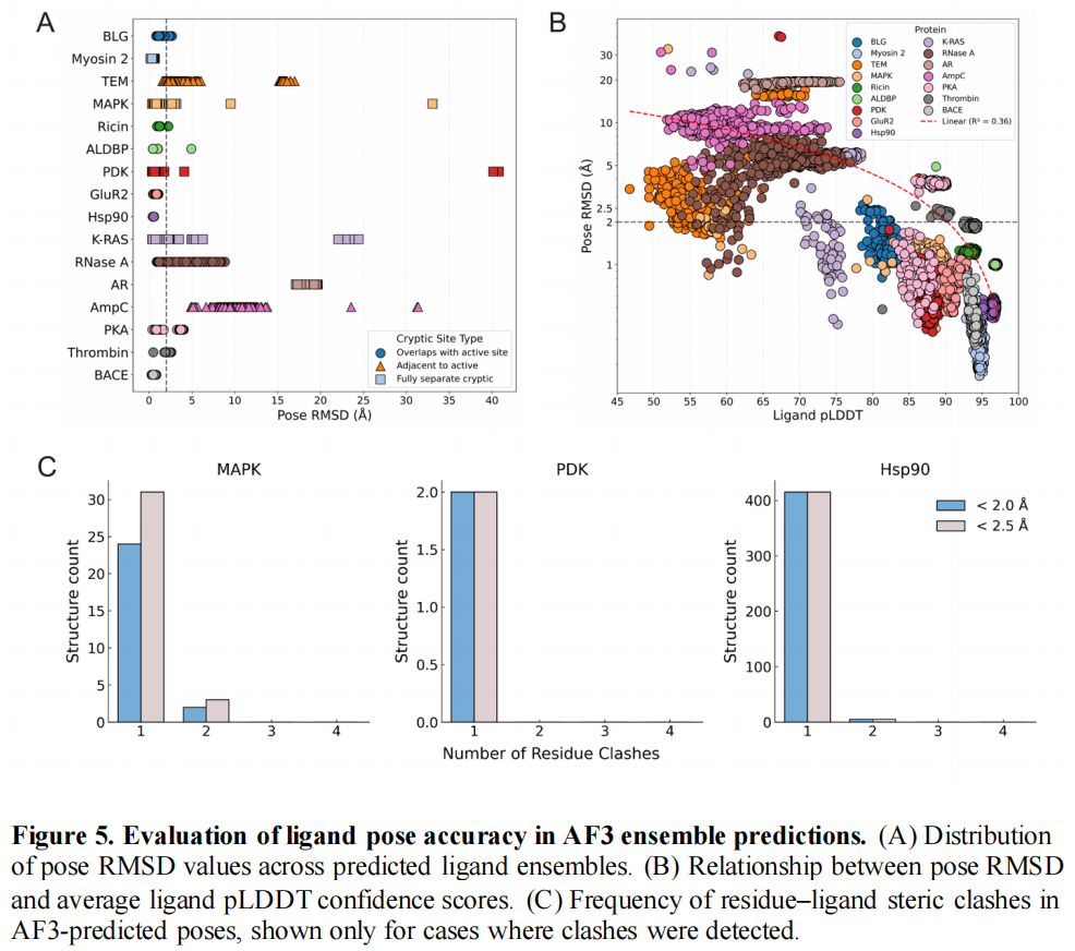 AF3在配体定位与口袋识别方面表现出高准确性,同时提供了可量化的可靠性评估标准: