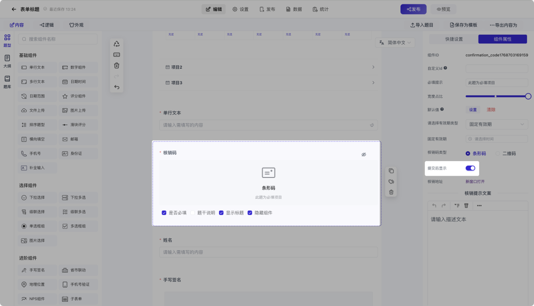 核销码支持配置提交后是否显示,可实现先审核后发放核销码的业务流程。