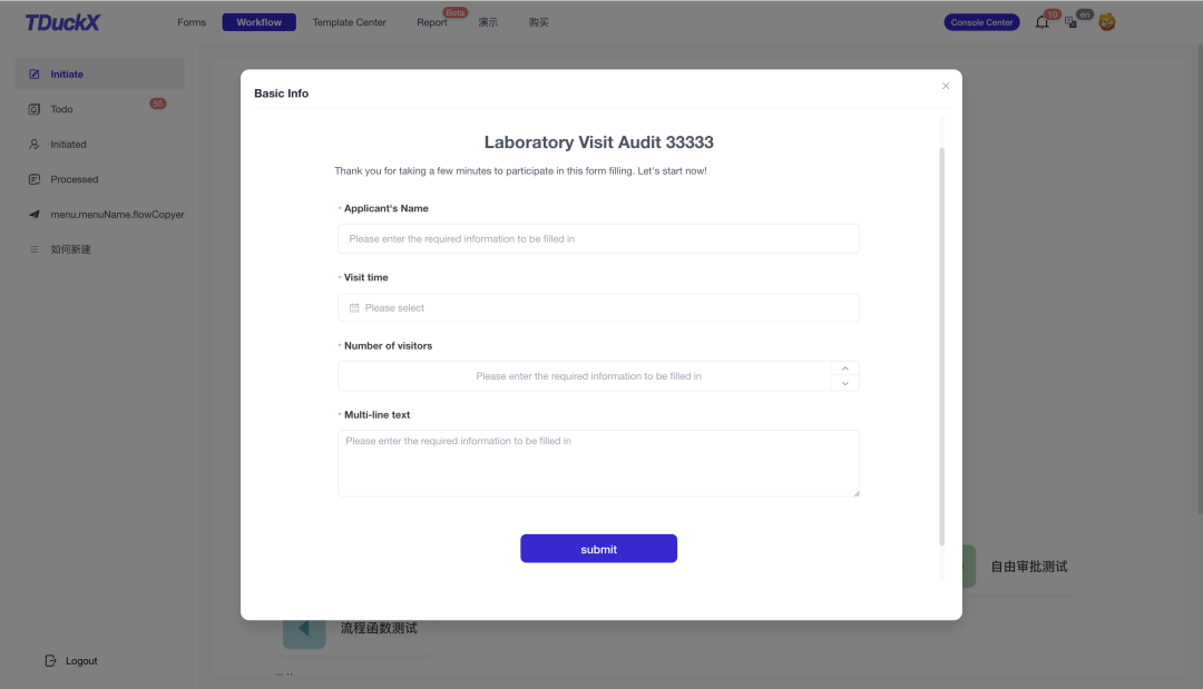 流程发起和审批页面支持表单多语言配置,满足多语言使用需求。