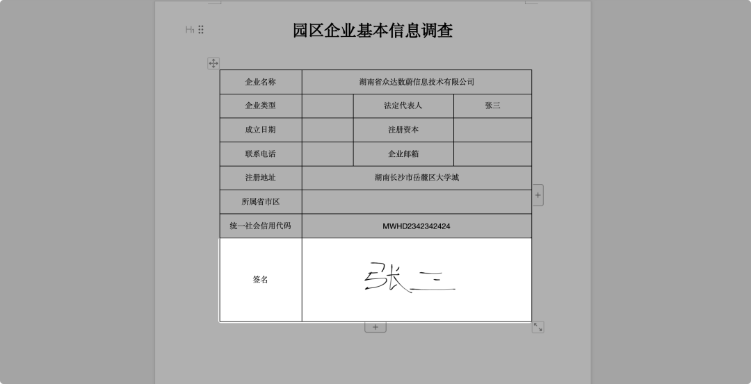 Word 模板打印支持手写签名字段,数据提交之后,导出的文档可完整展示签名内容。