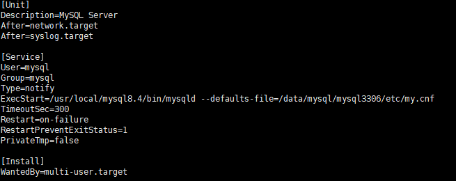 ExecStart=/usr/local/mysql8.4/bin/mysqld --defaults-file=/data/mysql/mysql3306/etc/my.cnf