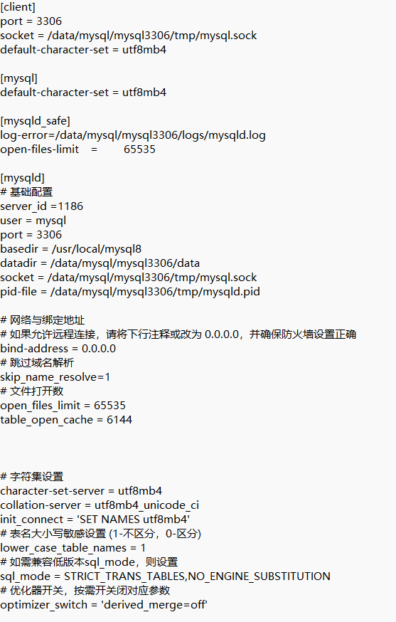 vim /data/mysql/mysql3306/etc/my.cnf,添加相关参数