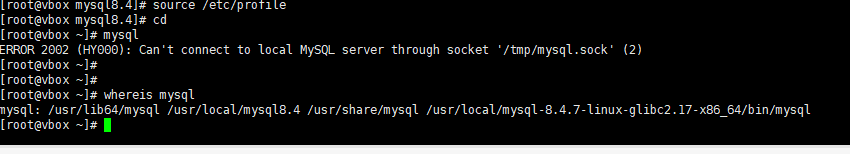 [root@vbox mysql8.4]# /usr/local/mysql8.4/bin/mysql -uroot -p'<E,-q/dBL6-p' --socket=/data/mysql/mysql3306/tmp/mysql.sock -A