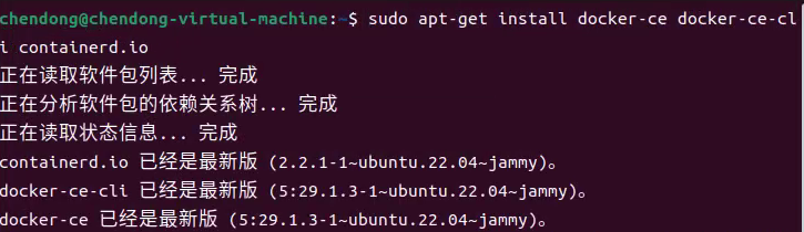 sudo apt-get install docker-ce docker-ce-cli containerd.io